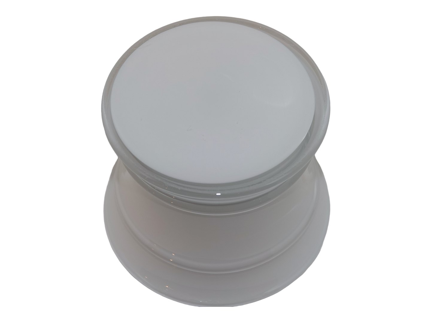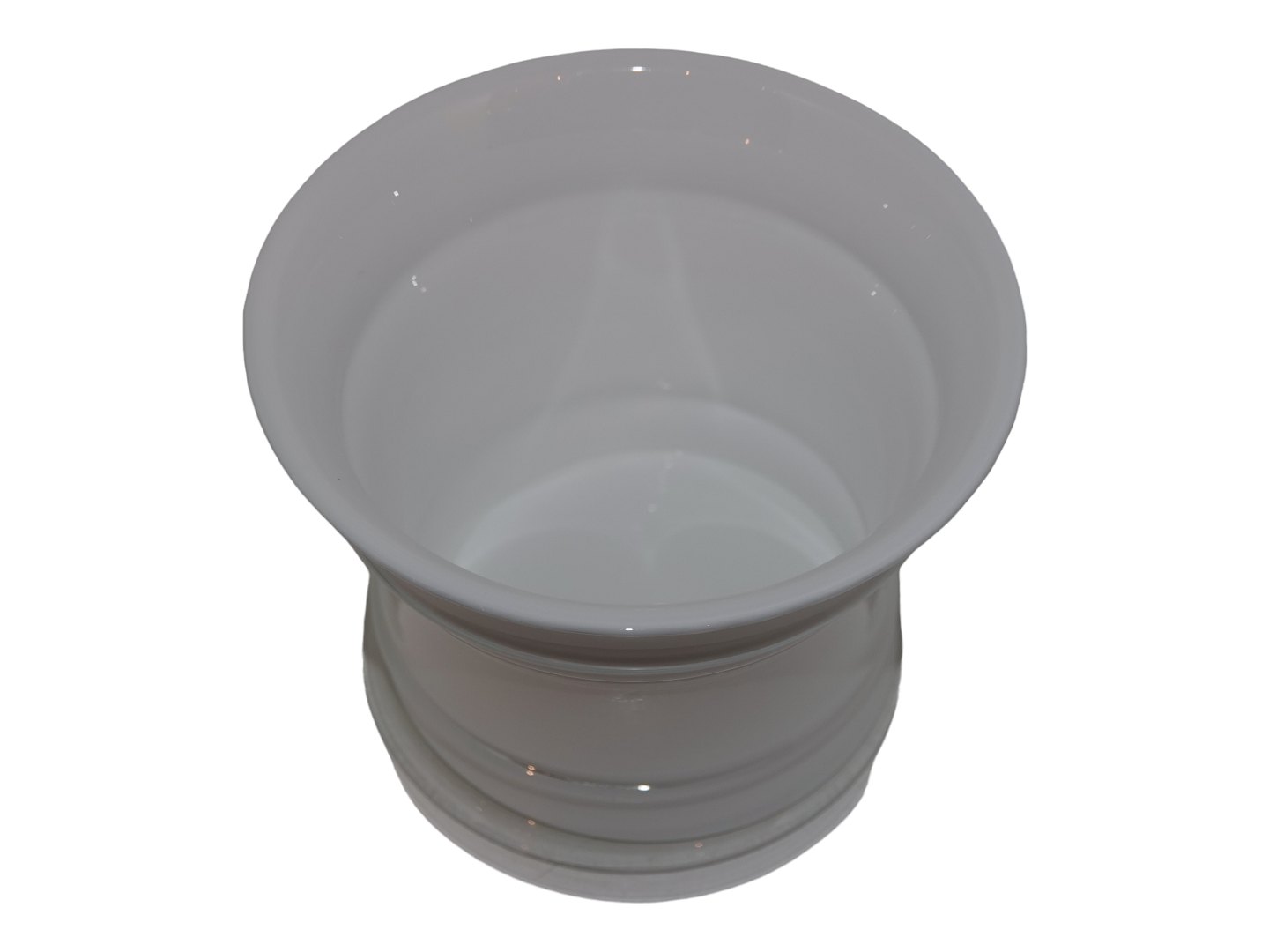 Holmegaard, MB urtepotteskjuler - mellemstor model. Hvidt opalglas. Designet af Michael Bang i 1981. Diameter 13,8 cm., højde 10,6 cm. Perfekt stand.