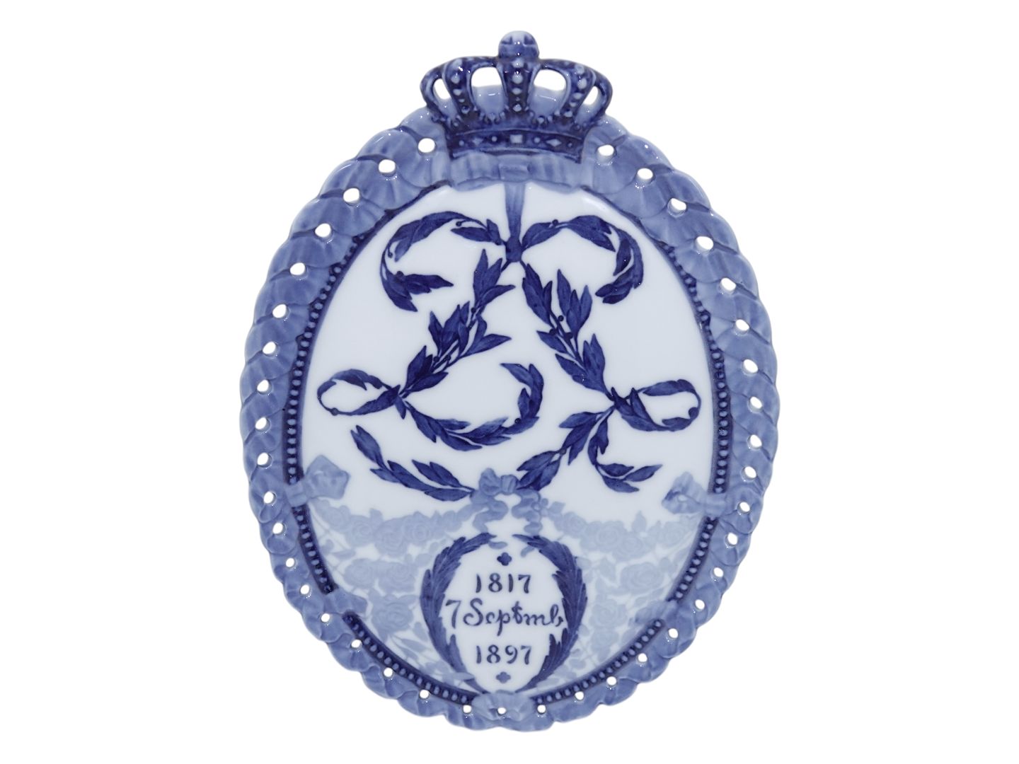 Rare Royal Copenhagen Commemorative plate with a crown from 1897.