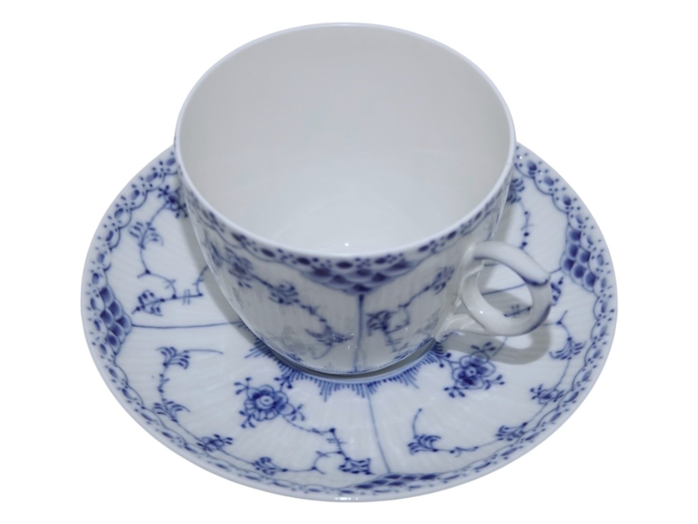 Royal Copenhagen Musselmalet Halvblonde, kæmpe kontorkop. Dekorationsnummer 1/703. 1. sortering. Koppen måler imponerende 9,5 cm. i diameter og 8,0 cm. i højden. Perfekt stand uden fejl.