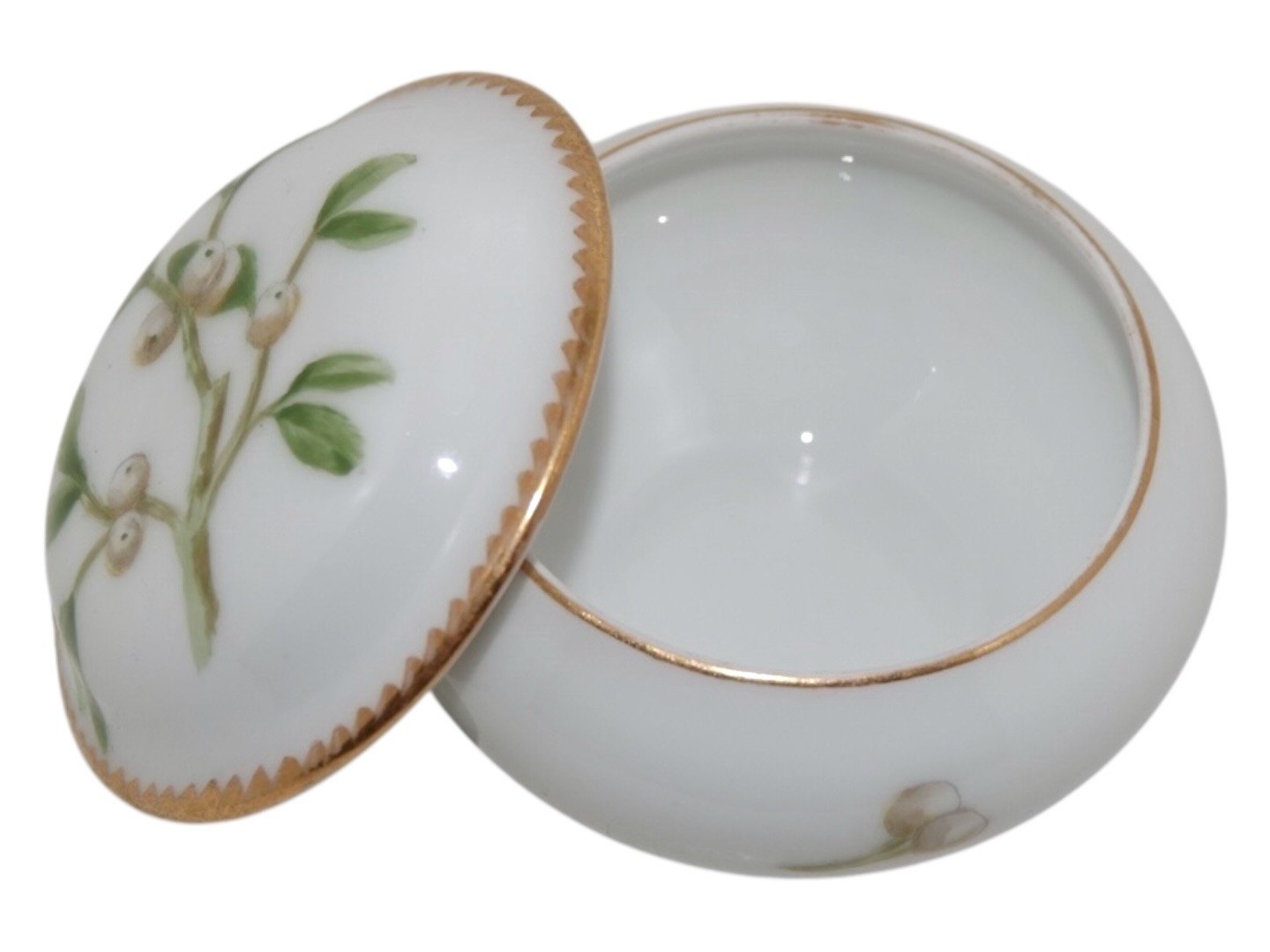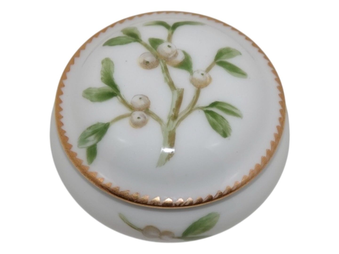Royal Copenhagen Art Nouveau, small round lidded box with snow berries.