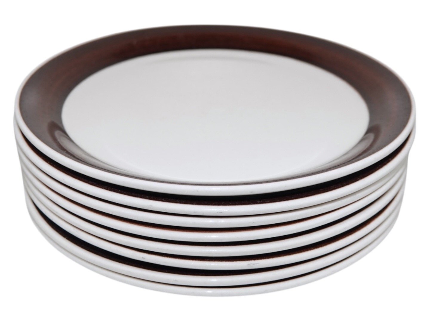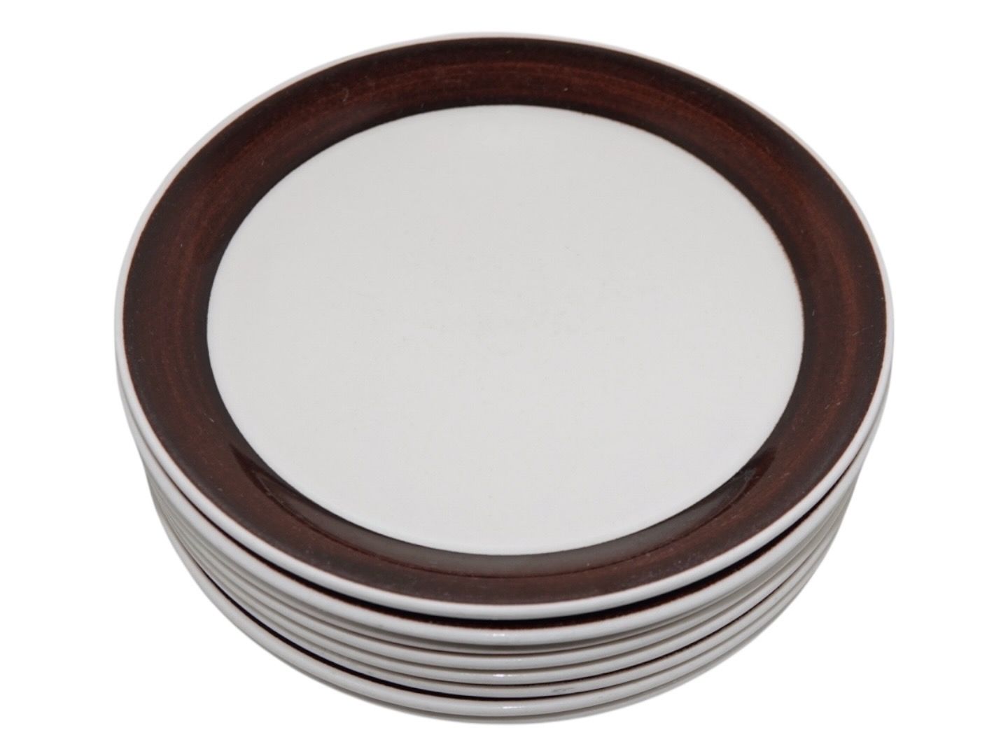 Arabia Finland Inari, dark brown side plate. Designed by Göran Bäck in 1976. Diameter 16.8 cm. There are small surface scratches in the glaze otherwise perfect condition.