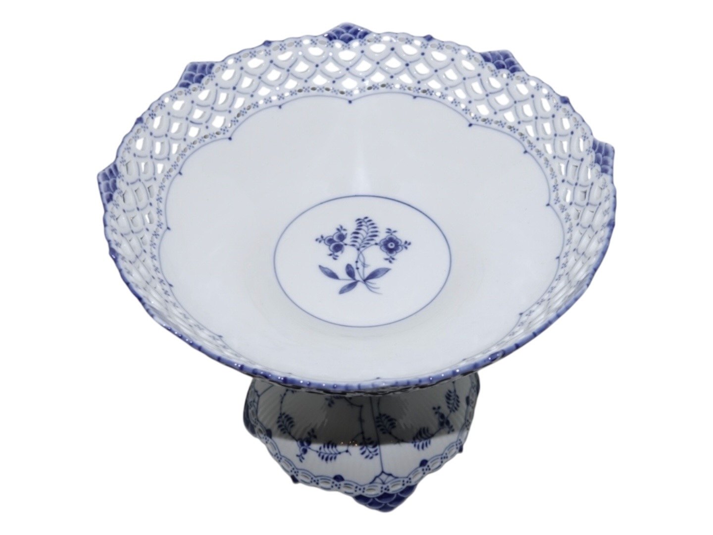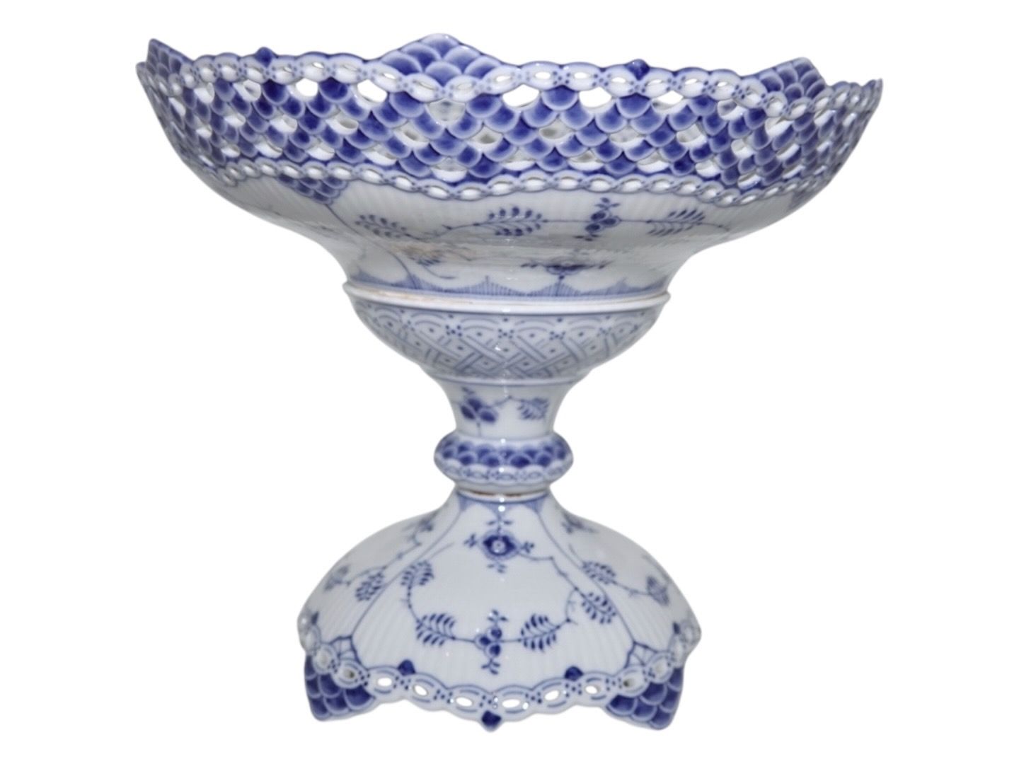 Royal Copenhagen Blue Fluted Full Lace, large centerpiece with double lace border.
