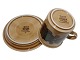 There are some surface scratches in the glaze on the saucers otherwise perfect condition.