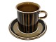 Arabia Finland Kosmos, coffeecup with matching saucer. Designed by Gunvor Olin-Grönqvist in 1962. The cup measures 7.0 cm. across and 7.8 cm. in height. Perfect condition.