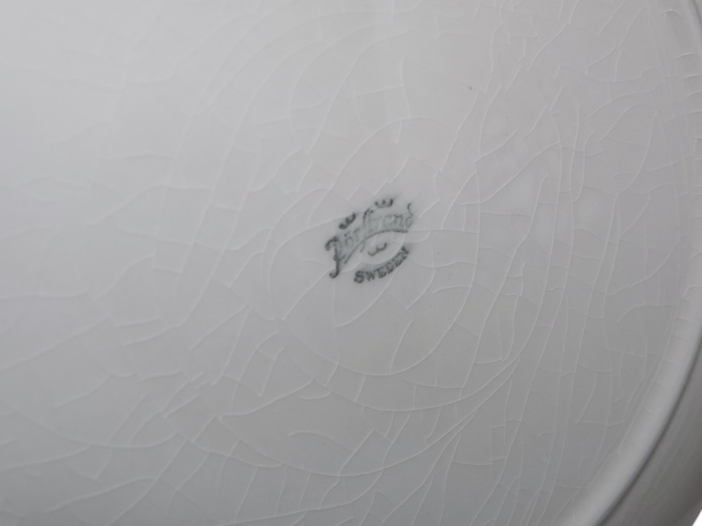 Rörstrand Blue Fire (Blå Eld), large round platter. Designed by Hertha Bengtsson and this pattern was produced from 1950 until 1971. Diameter 33.5 cm. There are discolorations and crazings in the glaze.