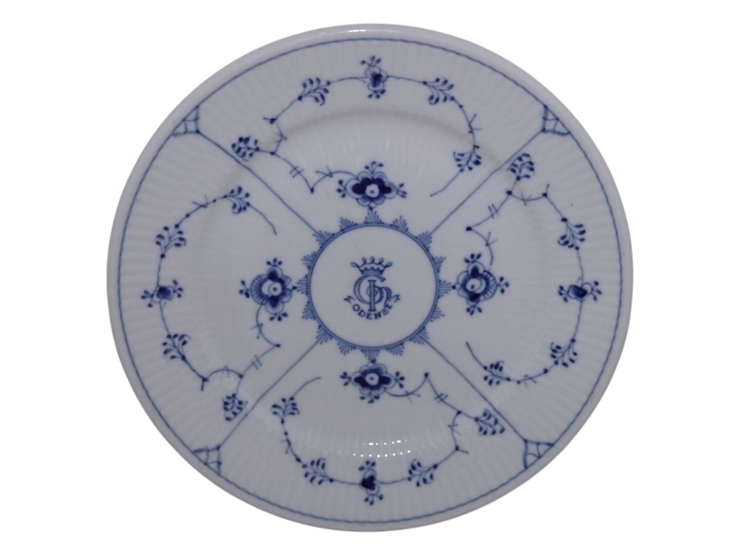 Bing & Grøndahl Blåmalet Hotelporcelæn (Musselmalet), sildetallerken med logo fra Odense. Dekorationsnummer 2005. 1. sortering. Diameter 19,2 cm. Perfekt stand uden fejl.