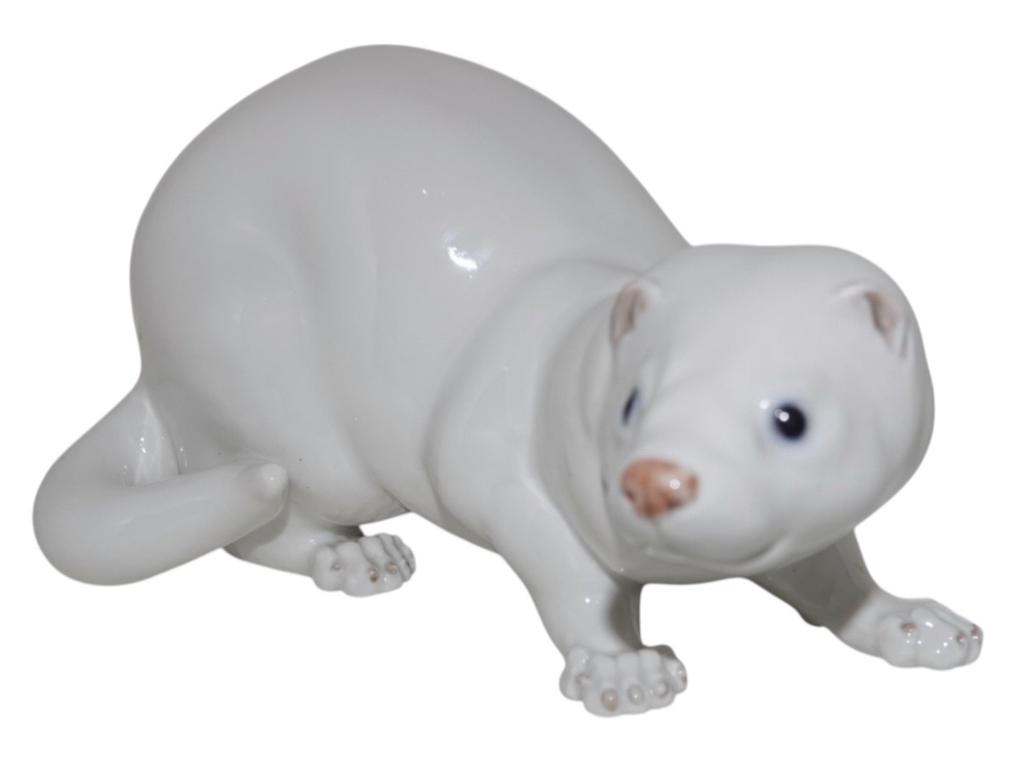 Royal Copenhagen figur, hvid mink. Designet af Jeanne Grut. Dekorationsnummer 4654. 1. sortering. Længde 17,5 cm. Perfekt stand uden fejl.