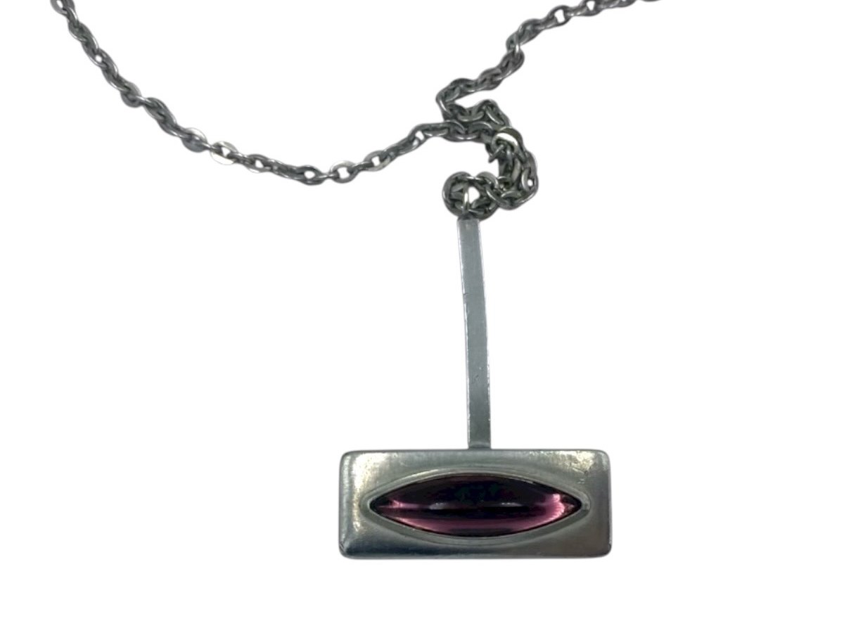 Jørgen Jensen Pewter, large pendant with purple glass stone and necklace.