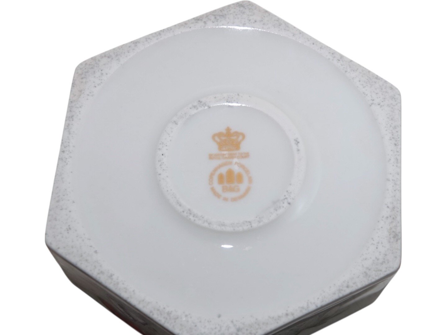 Bing & Grøndahl, sekskantet skål med låg dekoreret med nisser.