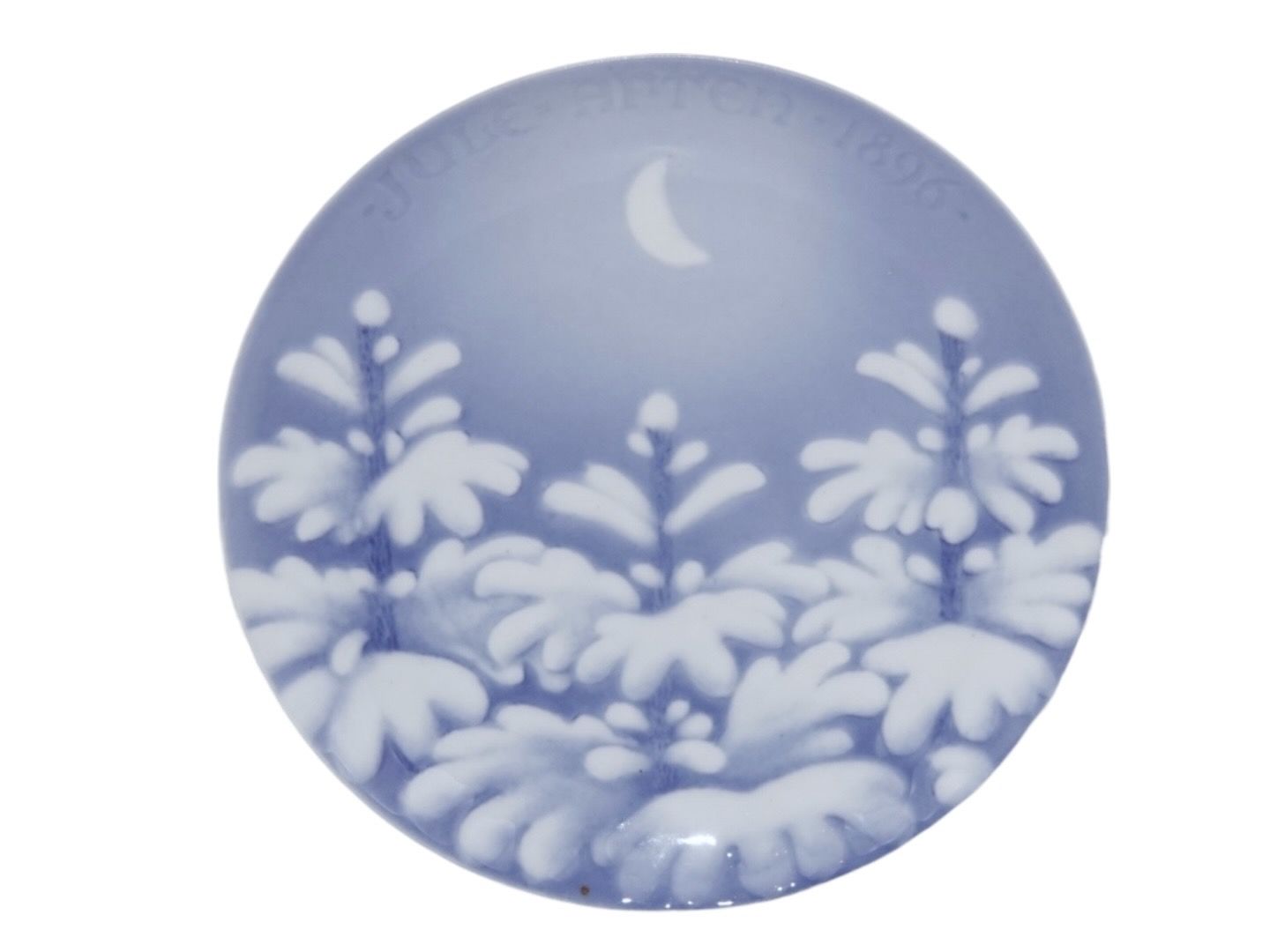 Bing & Grøndahl juleplatte fra 1896 - Nymåne over de snedækkede graner.