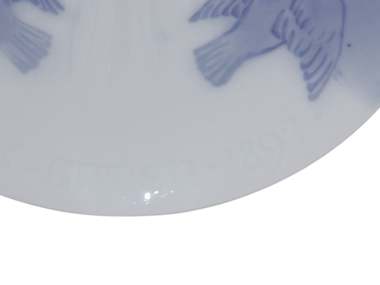 Bing & Grøndahl juleplatte fra 1897 - Spurvenes julemåltid. 1. sortering. Diameter 18,0 cm. Perfekt stand uden fejl.