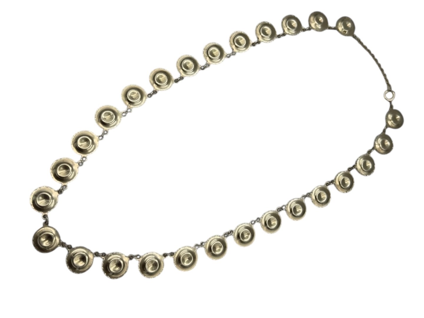 Anton Michelsen sterling silver and enamel, Daisy necklace with 27 small daisies. Hallmarked "AM STERLING DENMARK". This is from around 1960. Length 42.0 cm., each Daisy measures 1.1 cm. Perfect condition.
