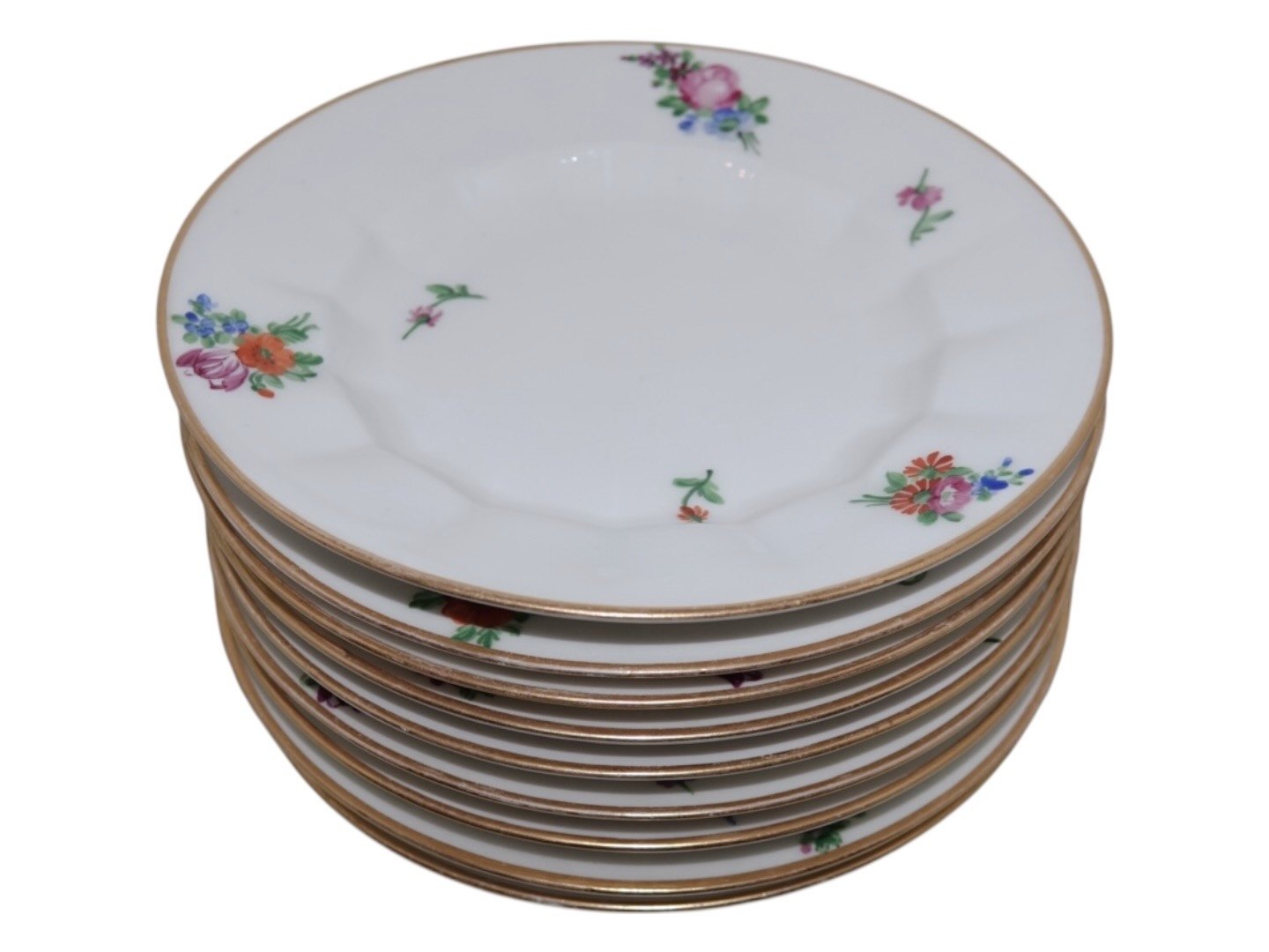 Royal Copenhagen Strøblomst (Let Henriette), stor kagetallerken. Dekorationsnummer 482/8518. 2. sortering. Diameter 17,5 cm. Der er en lille smule slid på nogle af guldkanterne ellers perfekt stand uden fejl.