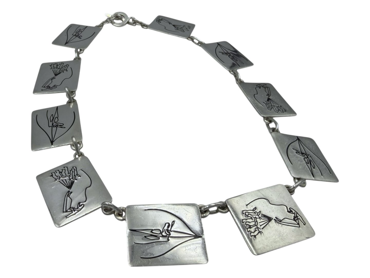 Tage Hansens Guldsmedie, kraftig sterlingsølv halskæde med motiver fra Grønland.