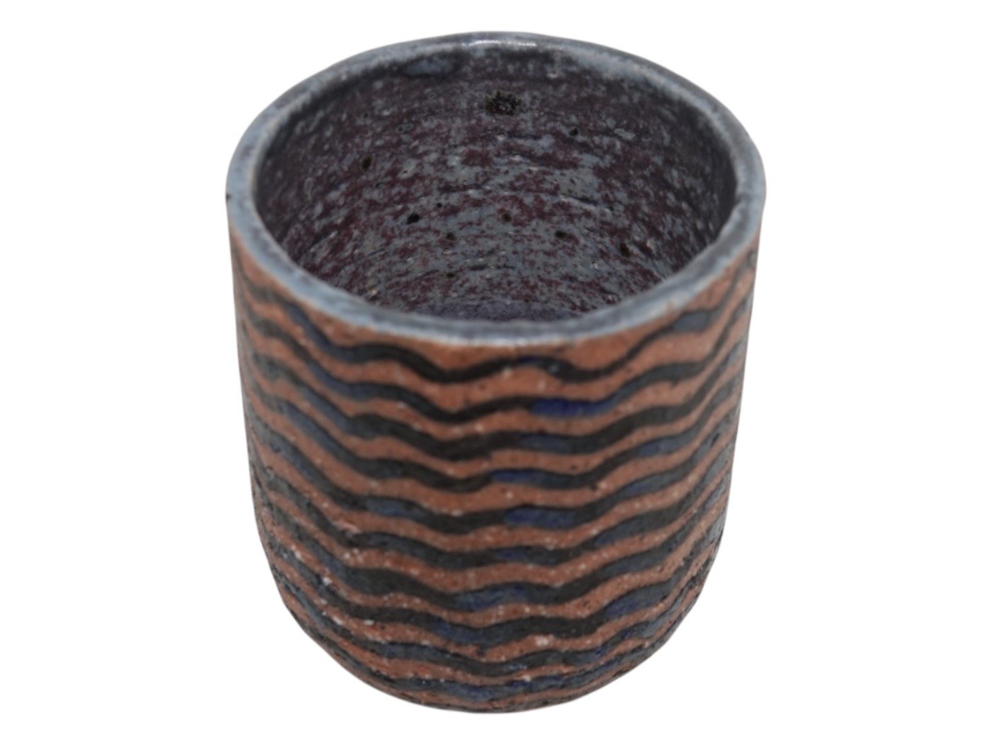 Christian Poulsen keramik tidlig vase med striber. Højde 9,9 cm., diameter 8,8 cm. Perfekt stand.