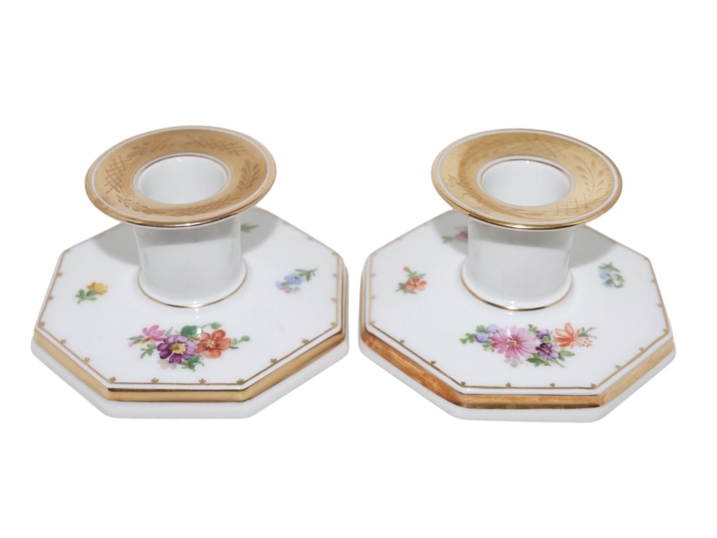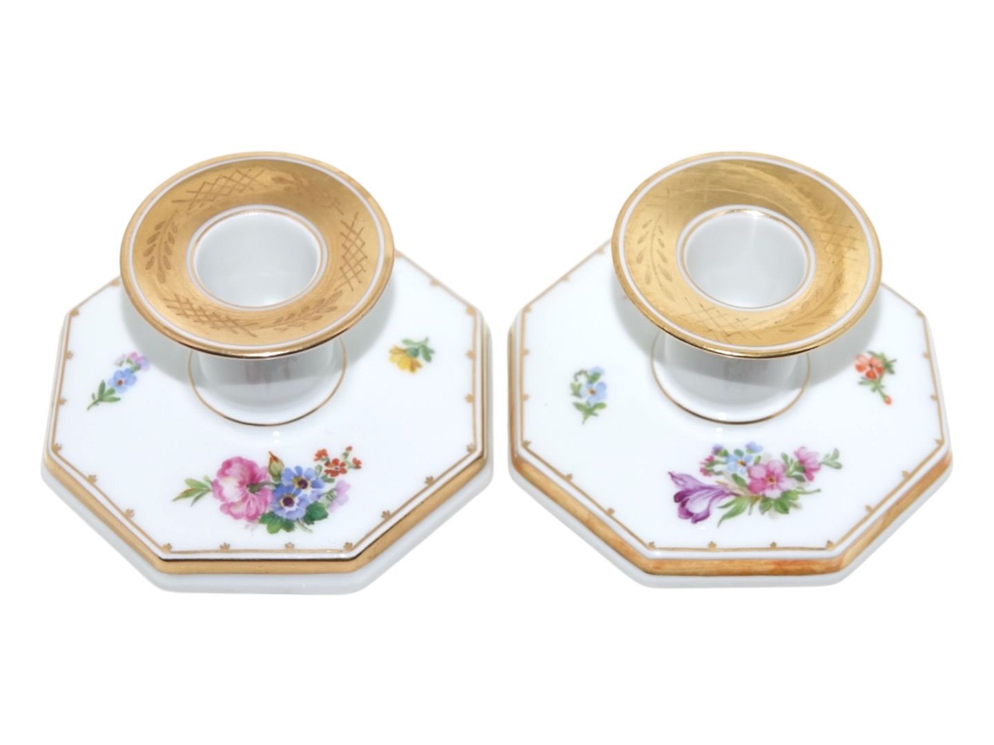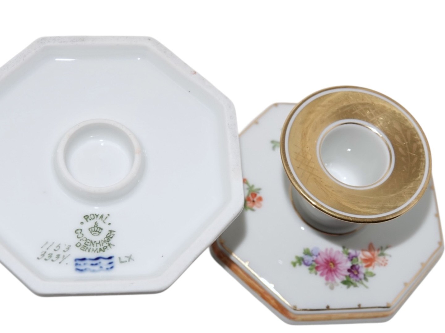 Royal Copenhagen Variation af Guldkurv, lysestage med blomster.