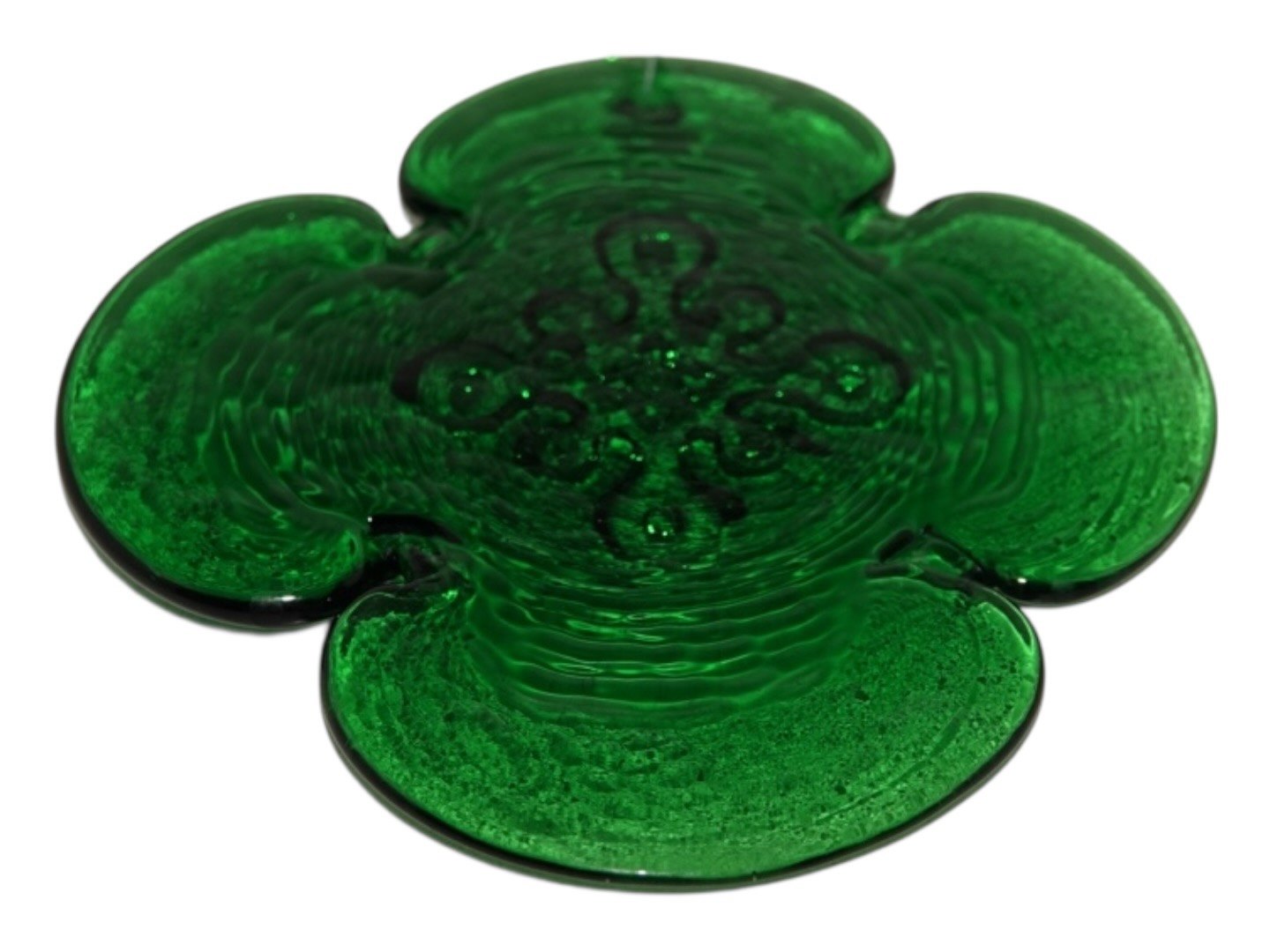 Holmegaard, lille grøn solfanger i form af firkløver fra 1970'erne.