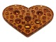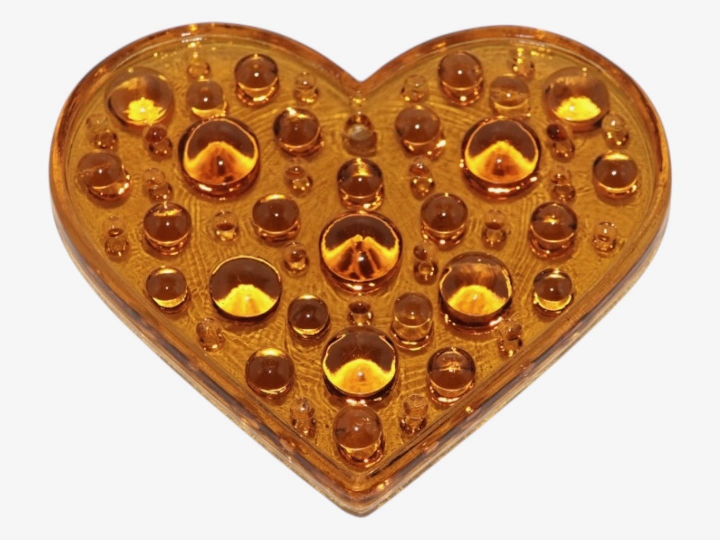 Glasværk fra Sverige, solfanger i form af karamelfarvet hjerte fra 1970'erne eller 1980'erne.