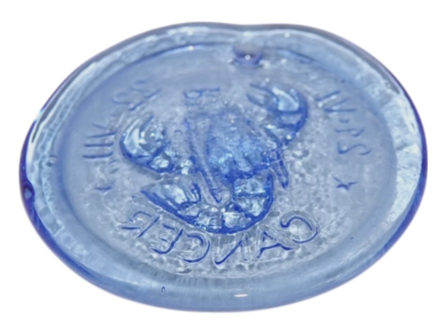 Holmegaard, lille blå solfanger med stjerneteget Cancer (Krebsen) fra 1970'erne.