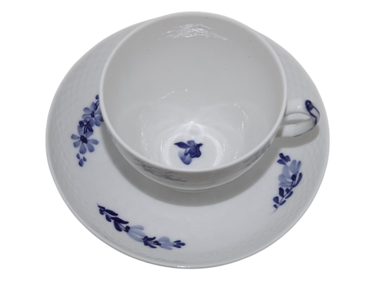 Royal Copenhagen Blå Blomst Flettet, stor kaffekop med bemaling inden i og med tilhørende underkop.