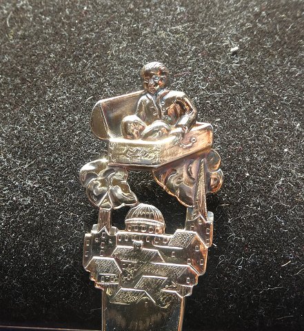 The Sandman or Ole- Luk- Oie child's fork of sterling silver 925 with enamel 12.5cm
