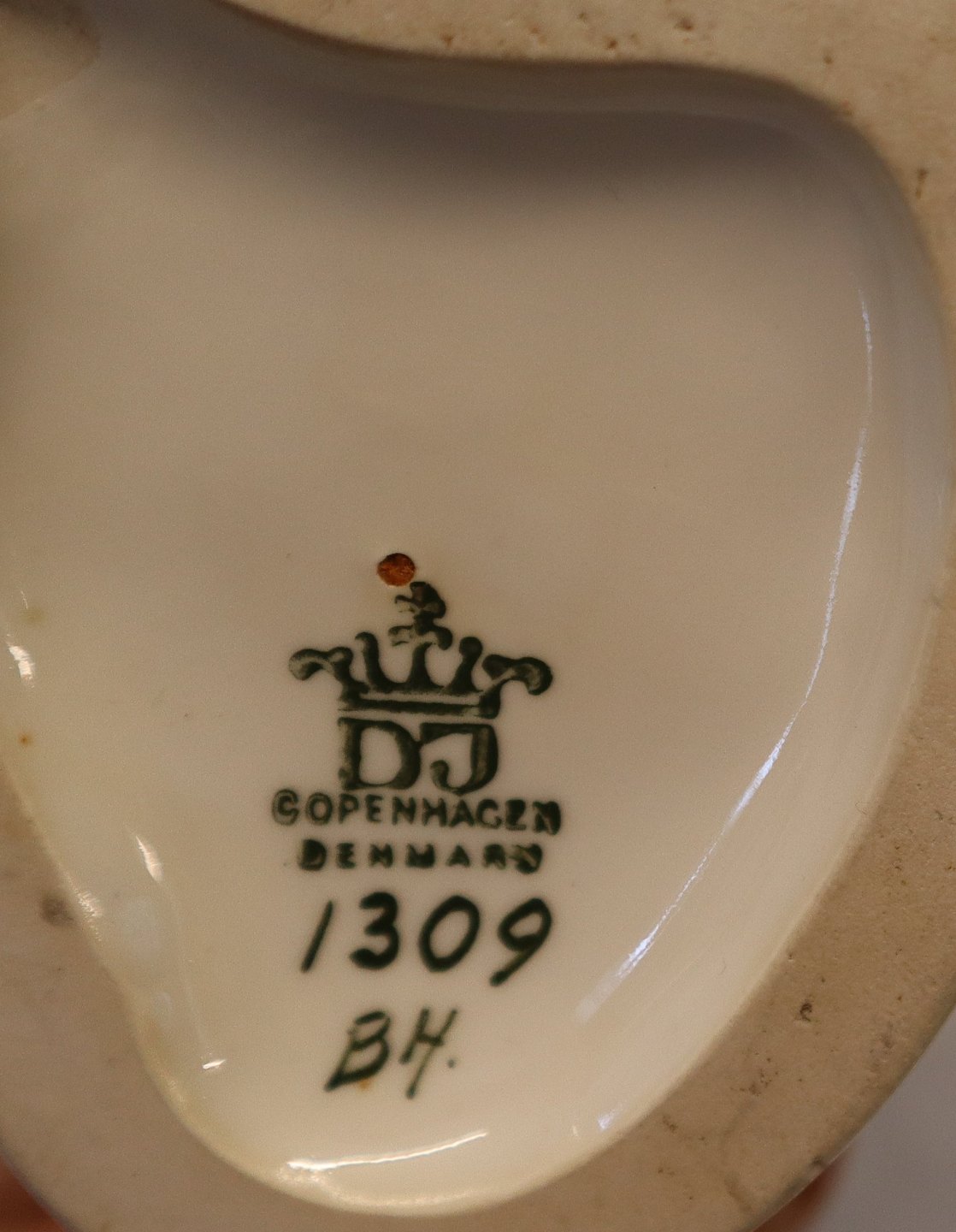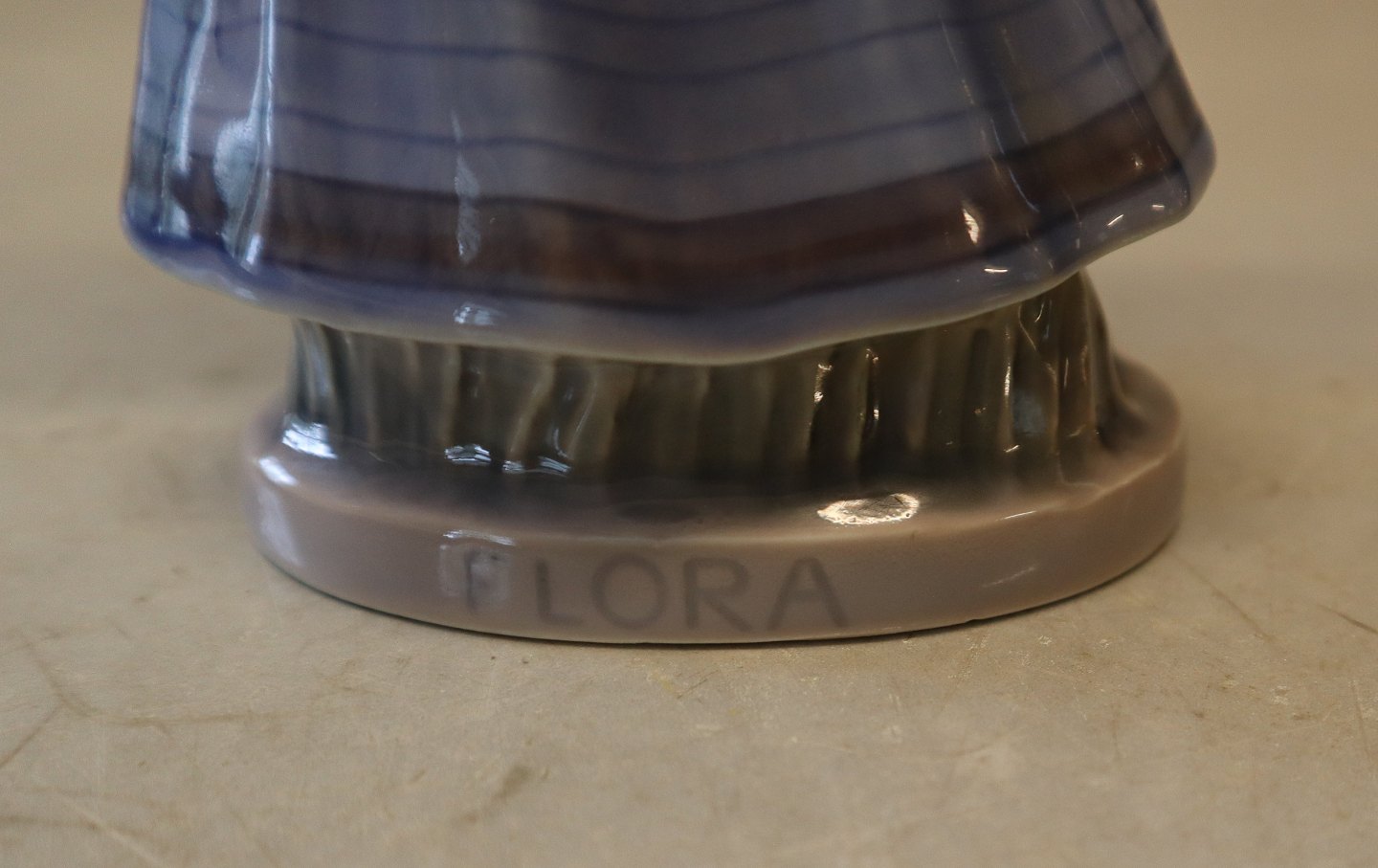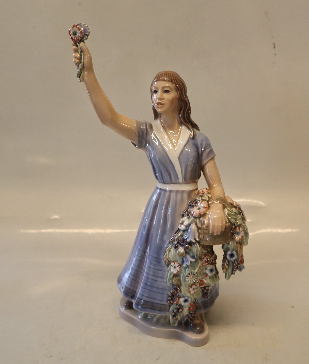 Dahl Jensen 1309 Flora 25,5 cm (DJ) Pige med blomster. Mærket med kongelig krone og DJ Copenhagen i hel og fin stand.
