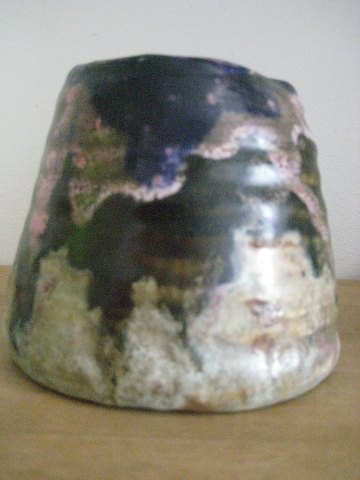 Text available in Danish: Niels Hansen Jacobsen vase i blå brun pink glasur. Denne vase er fra 1902 eller 1903 sign. NHJ Vi har flere ting fra samme periode ring og forhør om de andre ting.