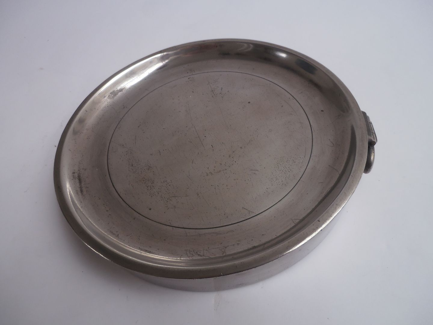 Varmefad af tin m. 2 hanke, England ca. 1880.