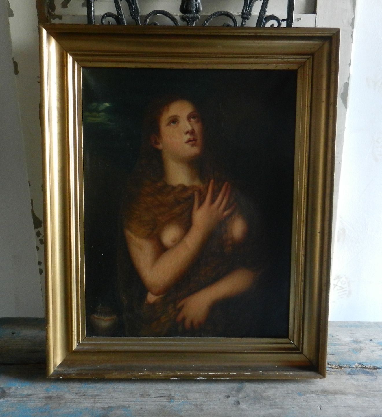 Smukt Italiensk oliemaleri, ung kvinde med blottet bryst.