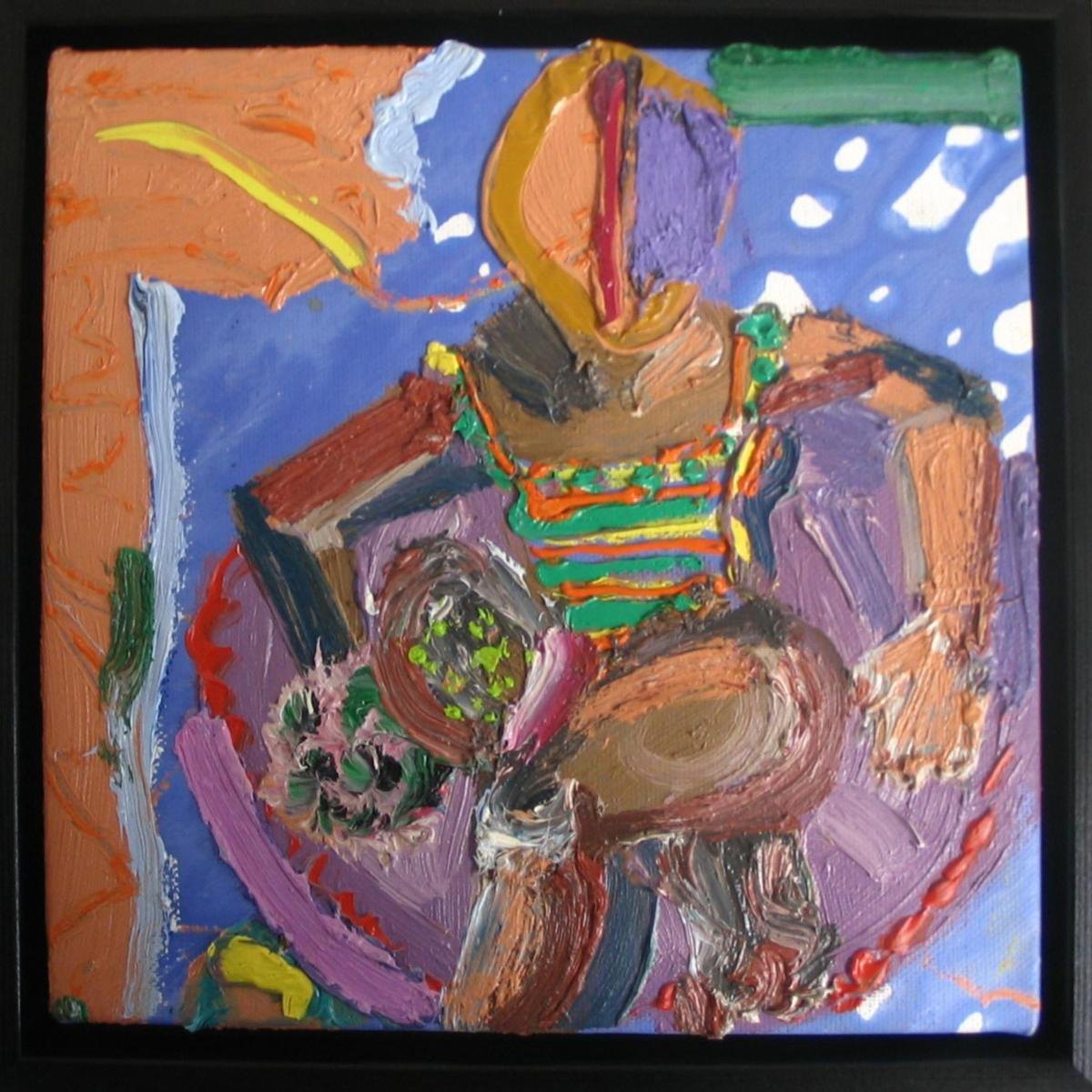 Bredtved, Michael (1959- ) Danmark: Supermodel 3. Olie på lærred/træ. Signeret på bagsiden.: Bredtved 05. 20 x 20 cm. Med sort svæveramme.