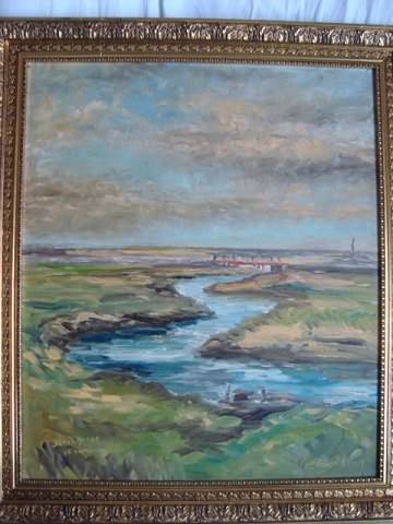 Maleri - Robert Nielsen - Ådal med dæmning.