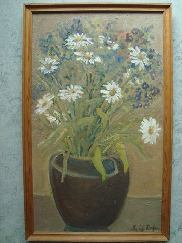 Maleri af Leif Rafn - Markblomster i vase 1967.