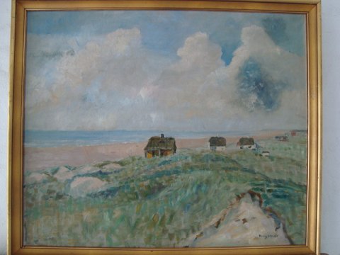 Maleri af Hugo Kongsmar - Parti fra Vestkysten med sommerhuse.