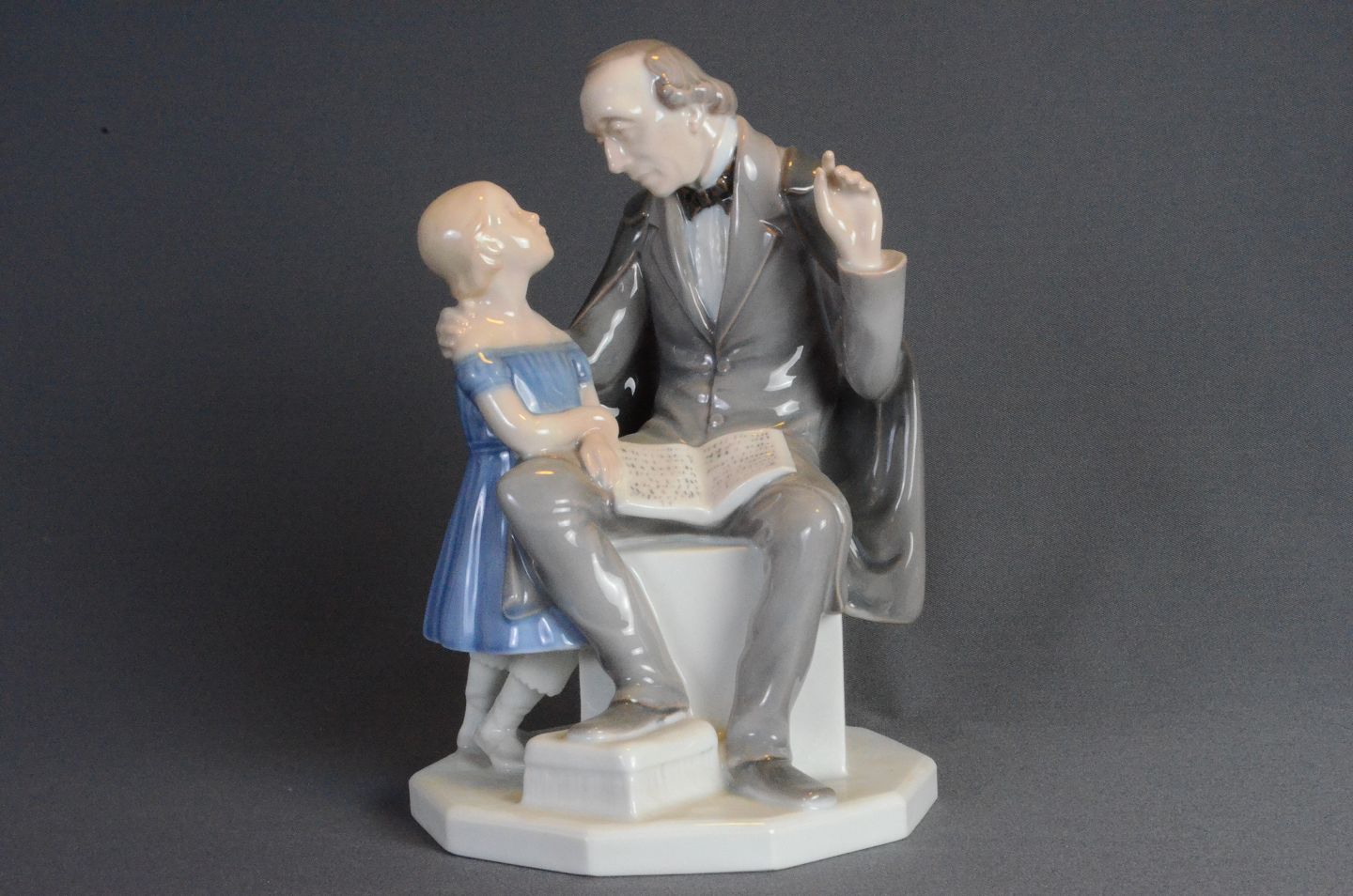 Porcelænsfigur: Bing & Grøndahl, H. C. Andersen med lille pige, h: 23 cm