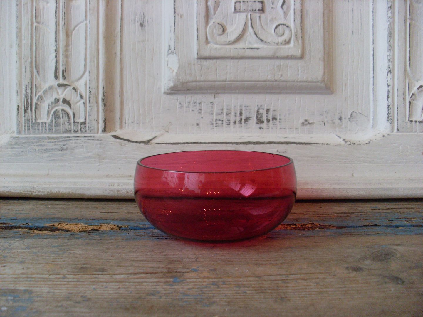 Skylleskål i hindbærfarvet glas.