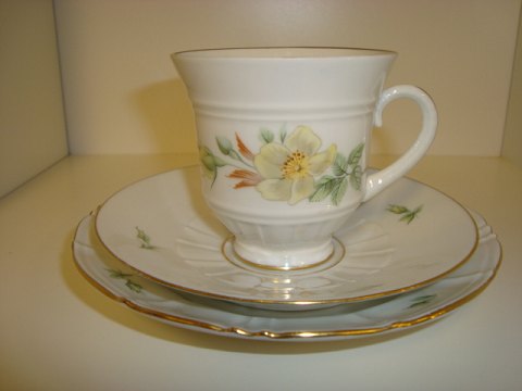 B&G Klitrose, Kaffekop, underkop og desserttallerken, 8 sæt på lager.