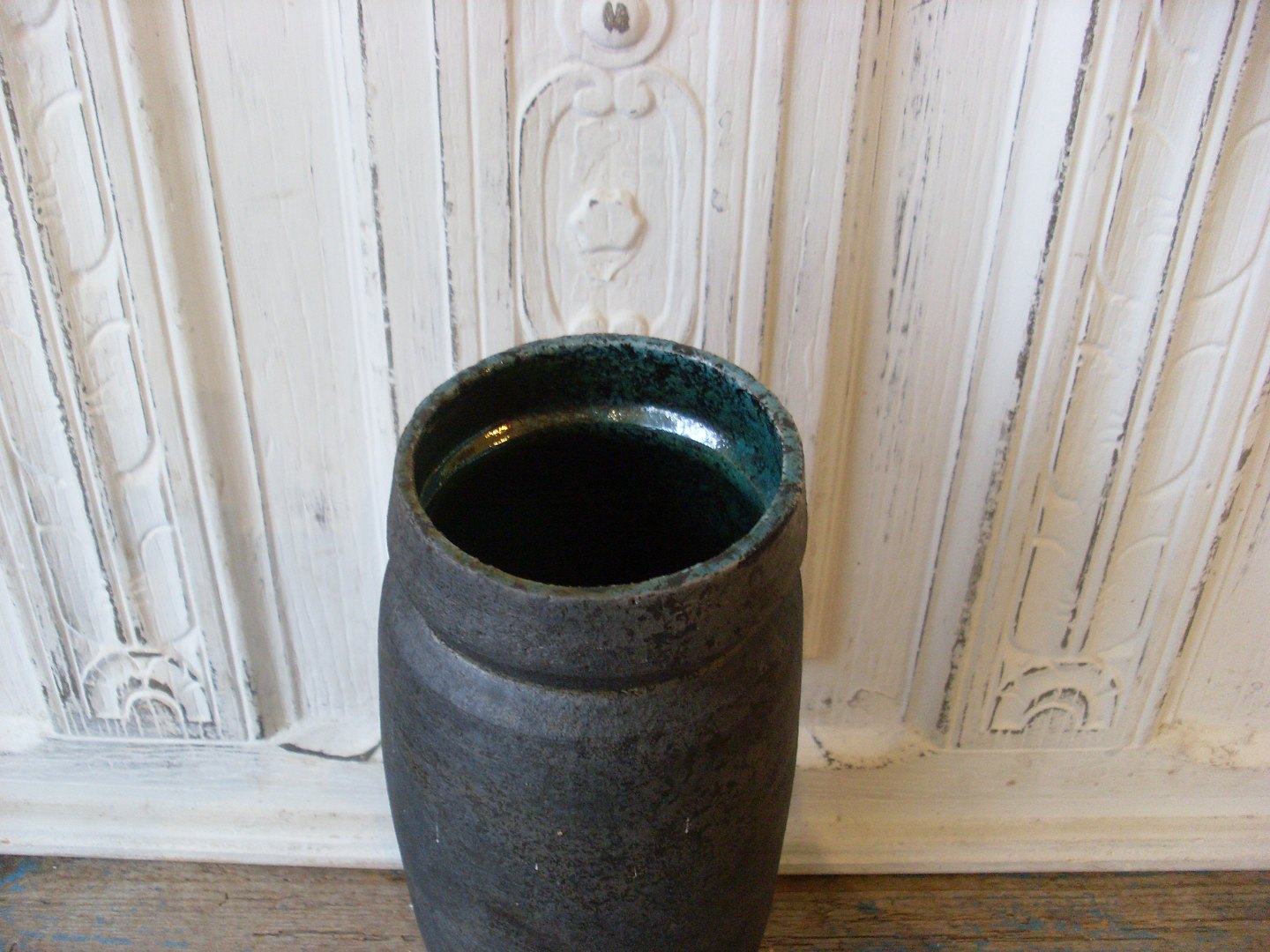 Dorte Visby låg vase i sort salt glasur 34cm.