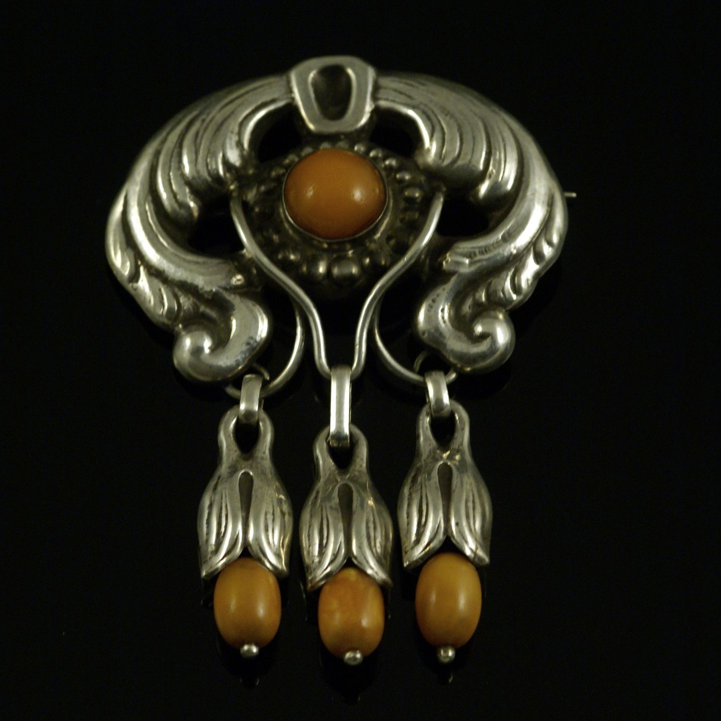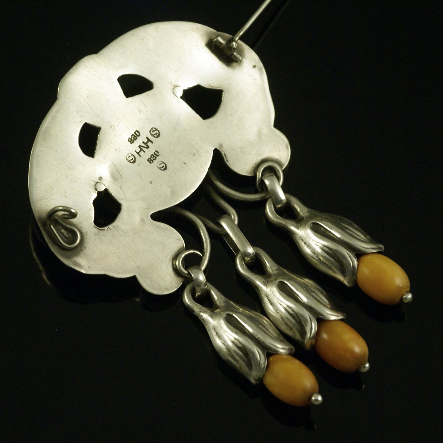 Danish Art Nouveau Silver Brooch with Amber - Hans Nicolajsen Hansen