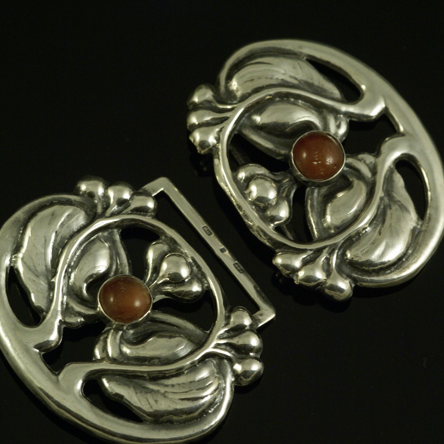 Bernhard Hertz. Skønvirke Bæltespænde i Sølv med rav.