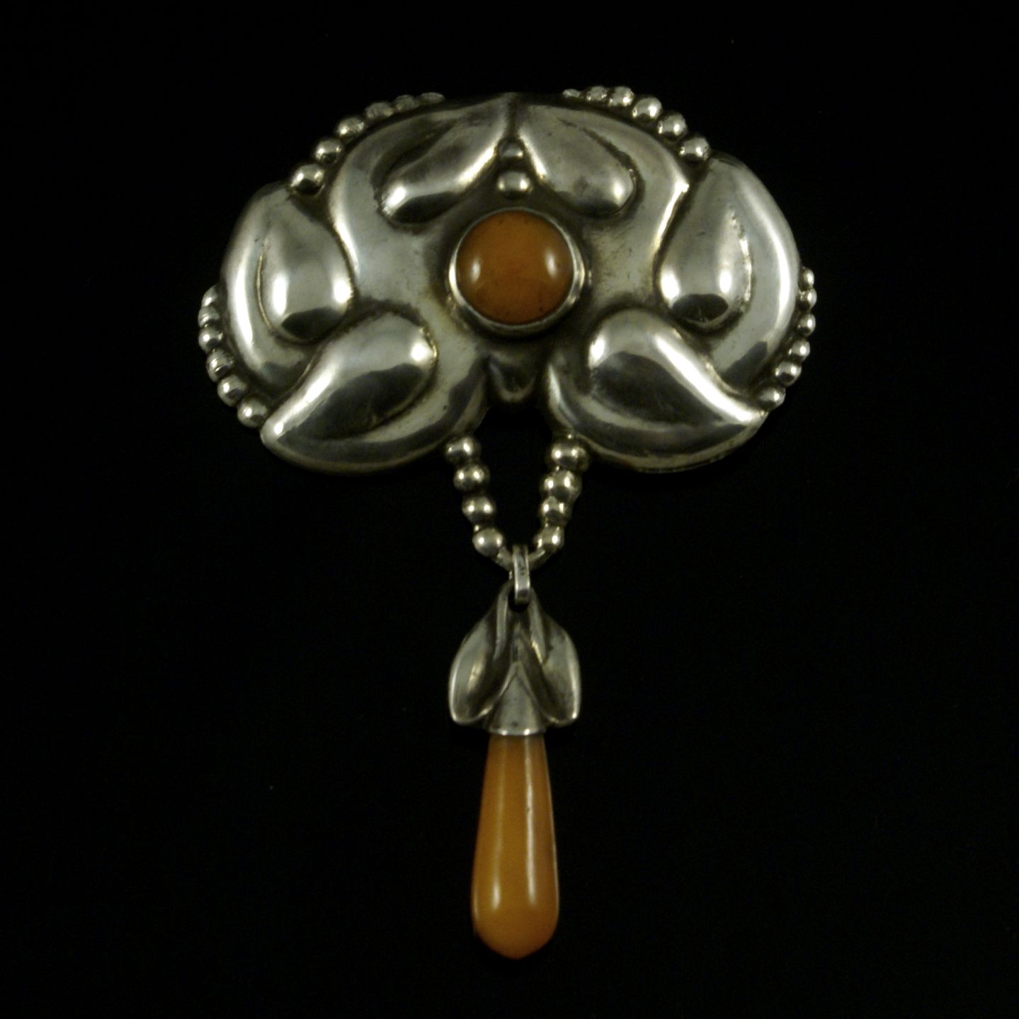 Danish Art Nouveau Silver Brooch with Amber - V. Lauritzen.