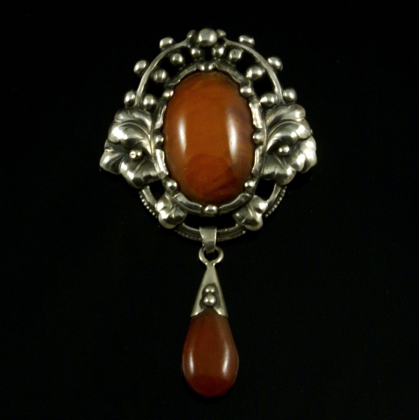 Danish Art Nouveau Silver Brooch with Amber - Kay Bojesen.