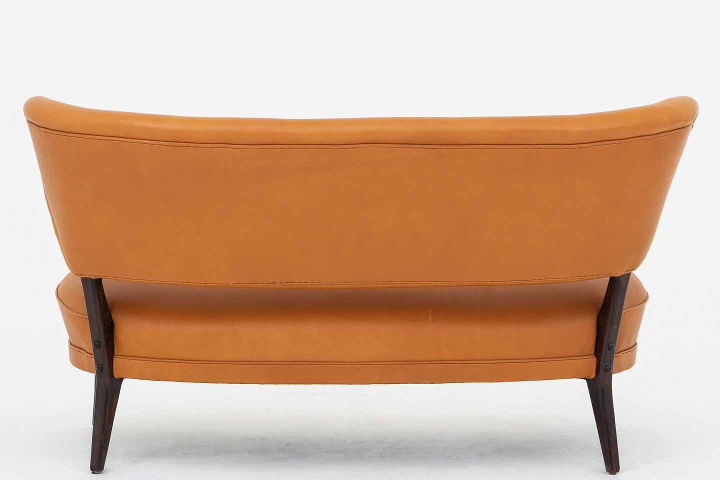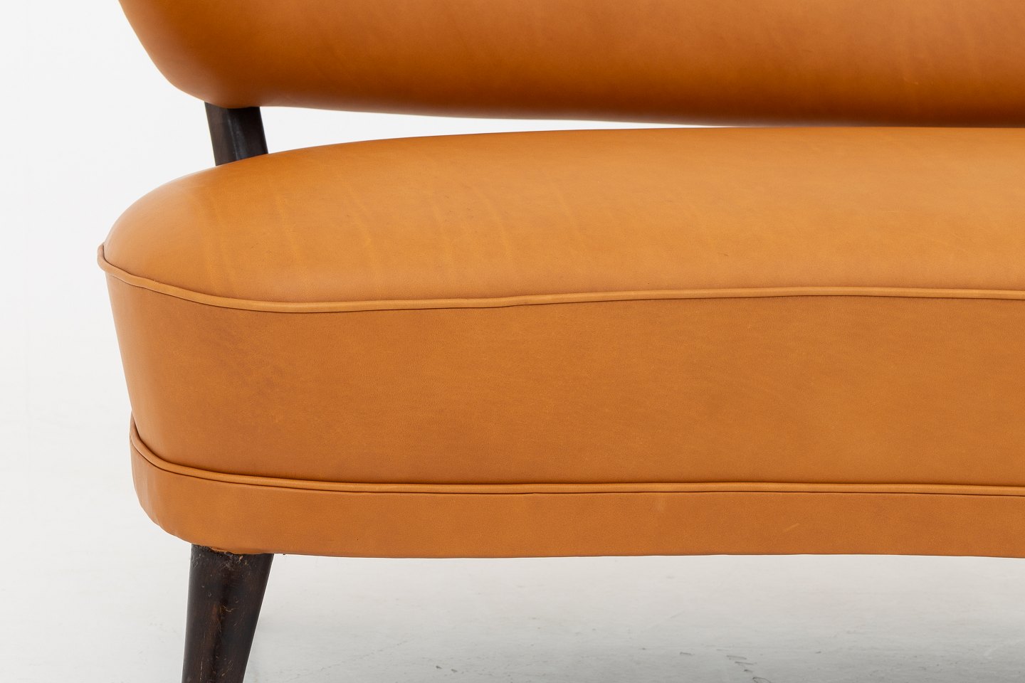 Nybetrukket sofa i Shade Cognac-læder med ben i bejdset bøg