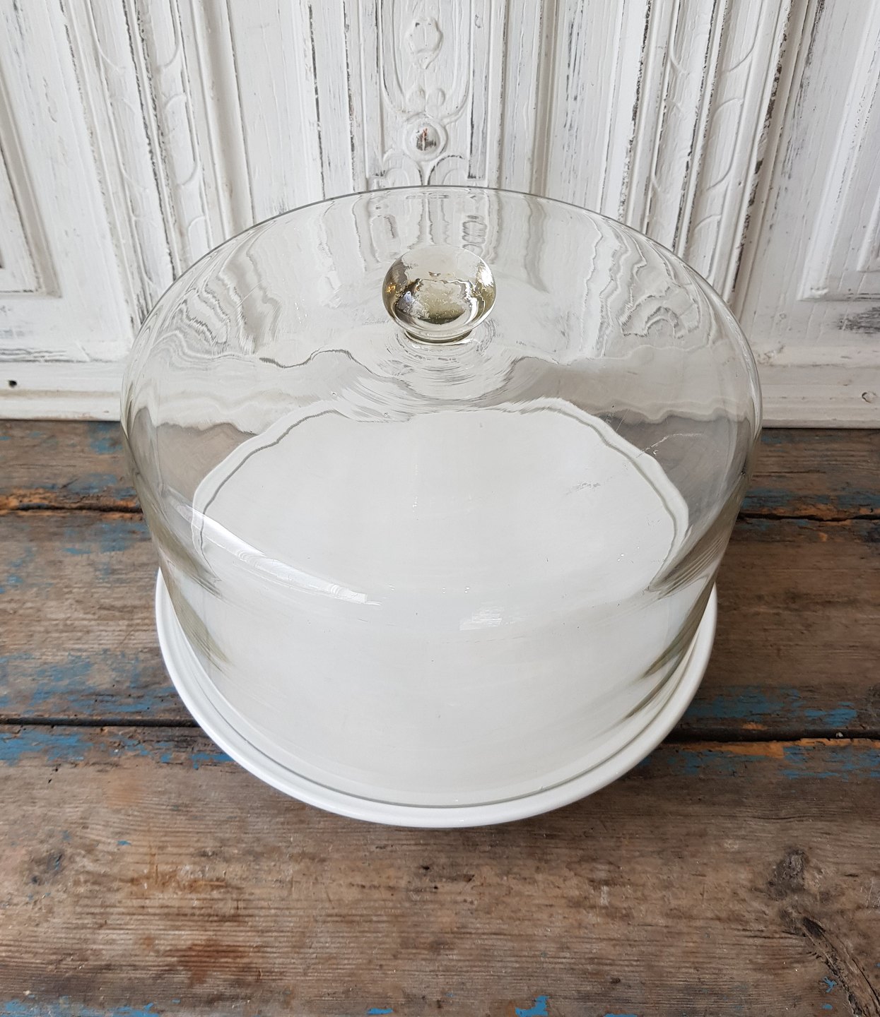 Sjælden stor glasklokke, stammer fra et gammelt bageri.