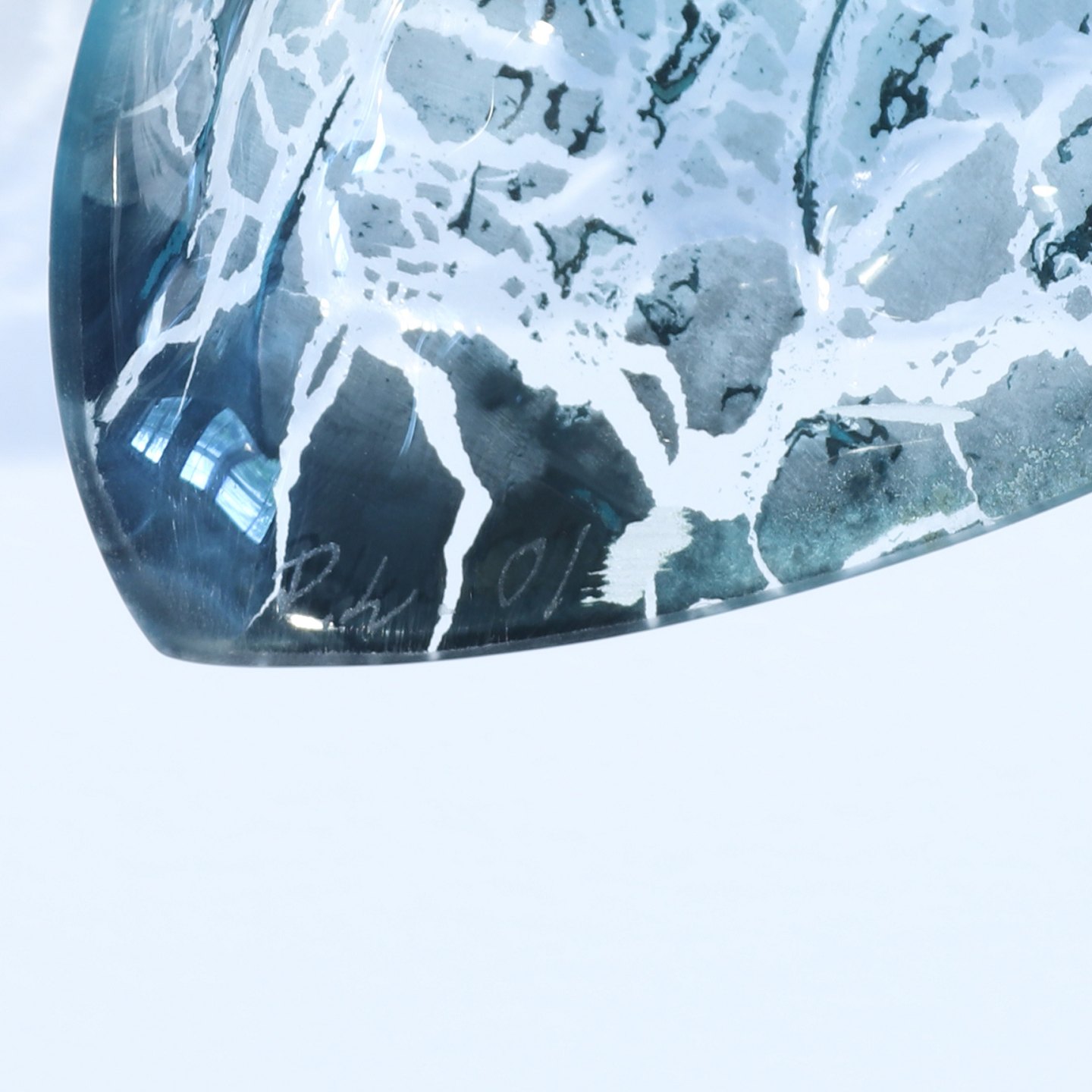 Lille skål i glas sign. PL01, højde 3,5 cm, længde 16 cm, bredde 8,5 cm