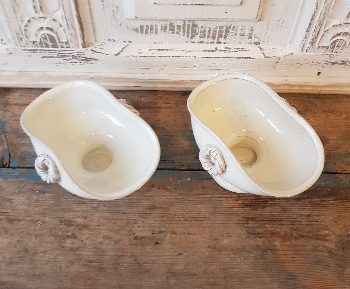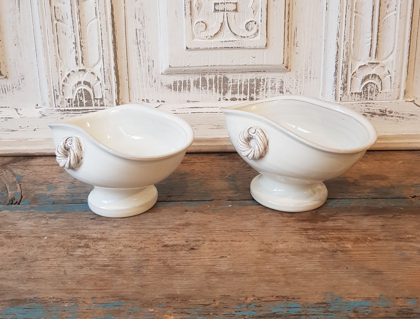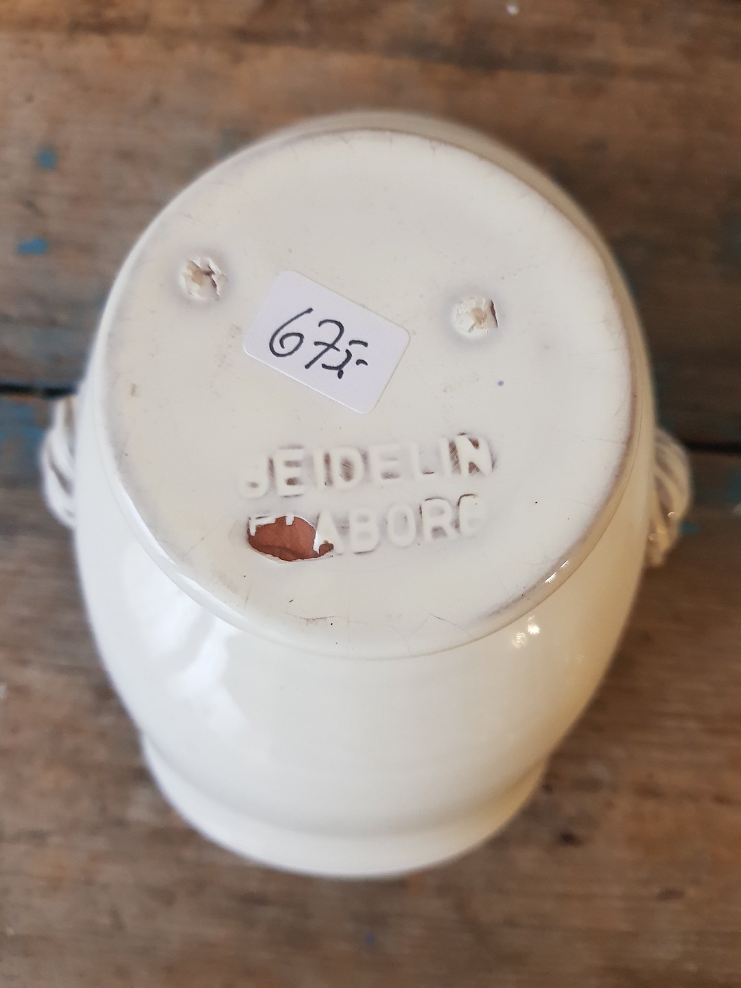 Seidelin - Faaborg cremefarvede keramikskål på fod med hanke.