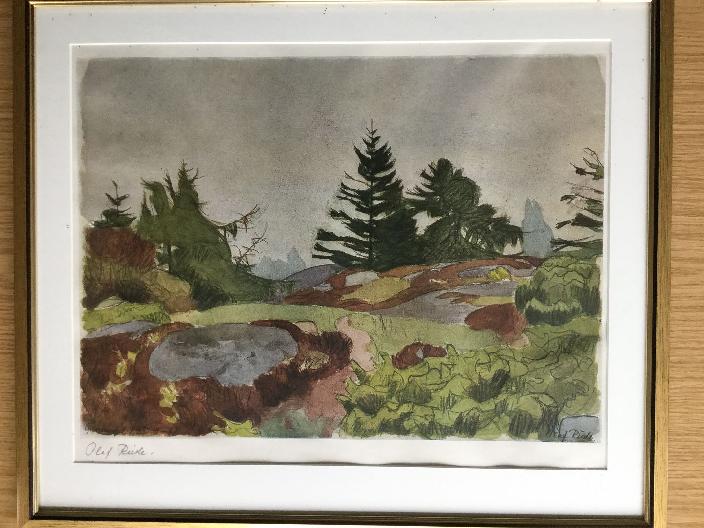 Nyere indramning med pæn passepartout (små dyr bag glas).