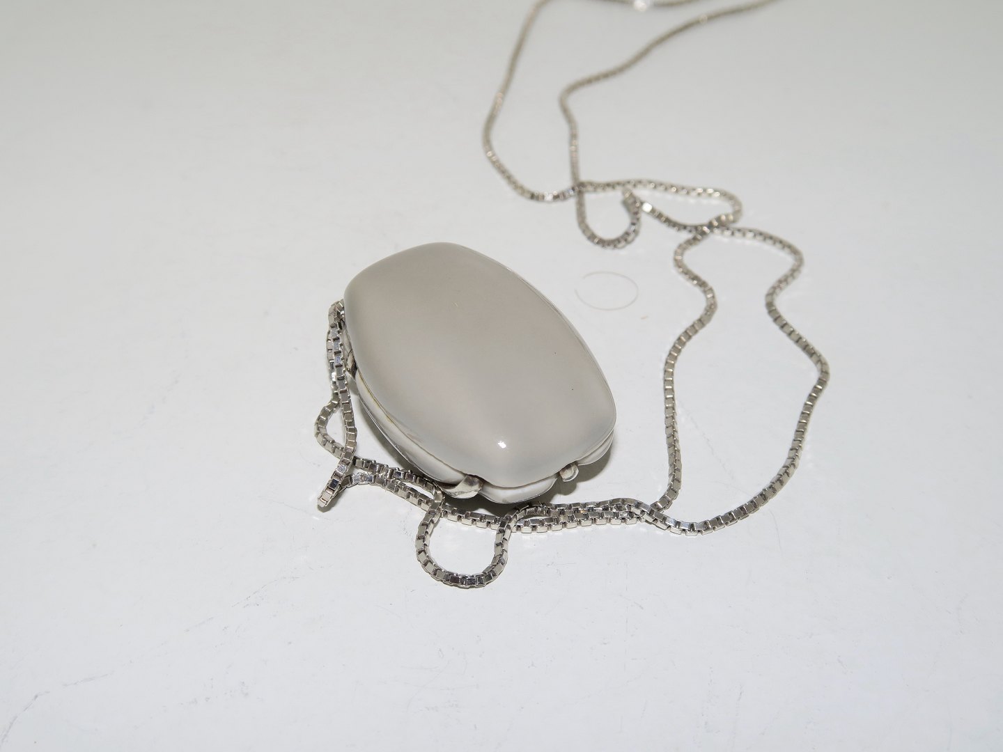 Kæden måler 50,0 cm. Vedhænget måler 3,8 x 2,7 cm.