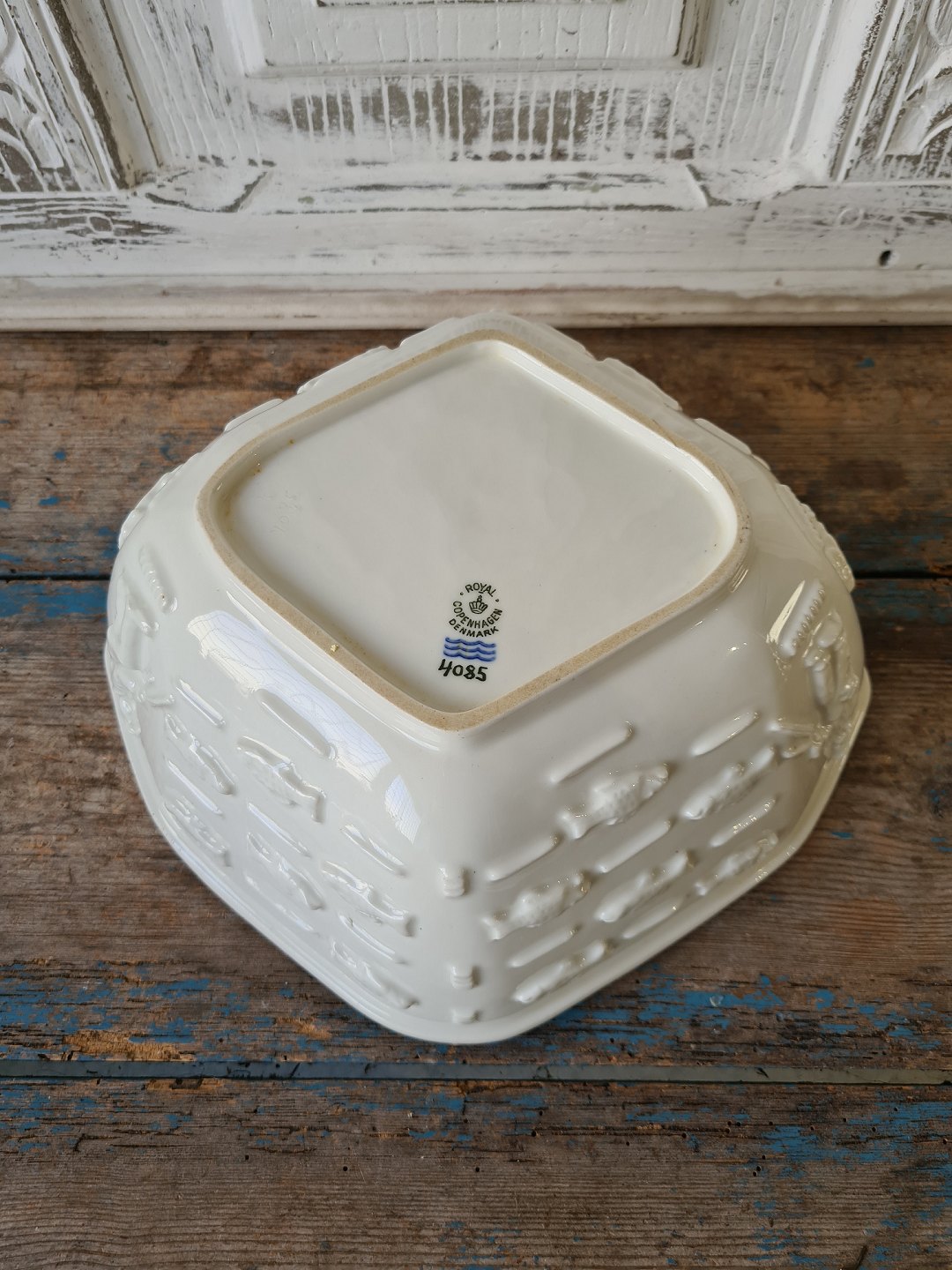 Bode Willumsen for Royal Copenhagen stor Blanc de Chine skål med fiskemotiver i relief no. 4085