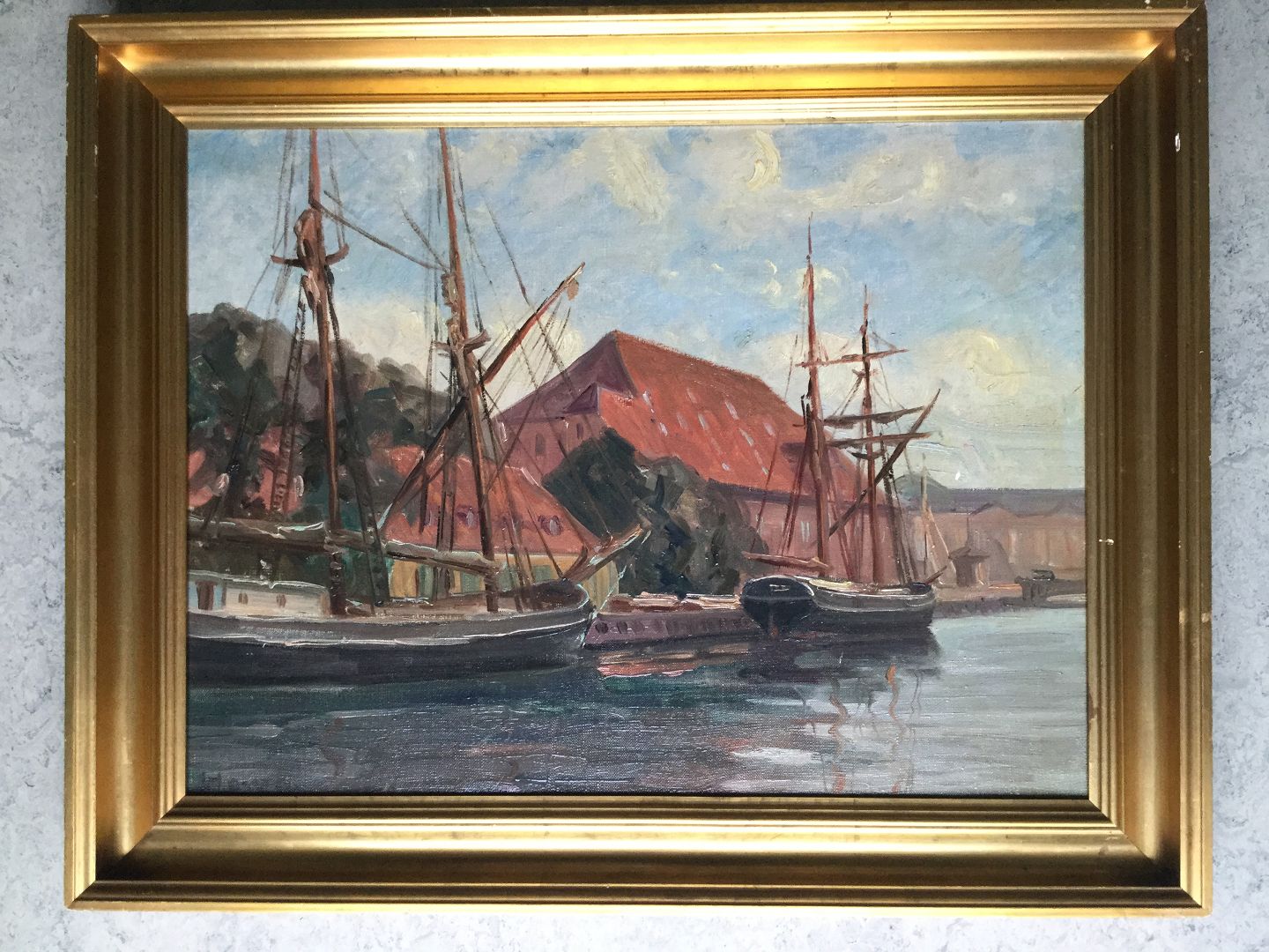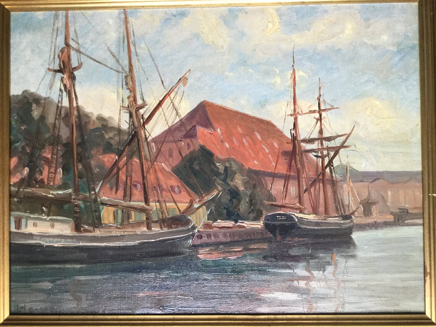 Maleri af Lauritz Howe - Parti fra Frederiksholm Kanal, København.