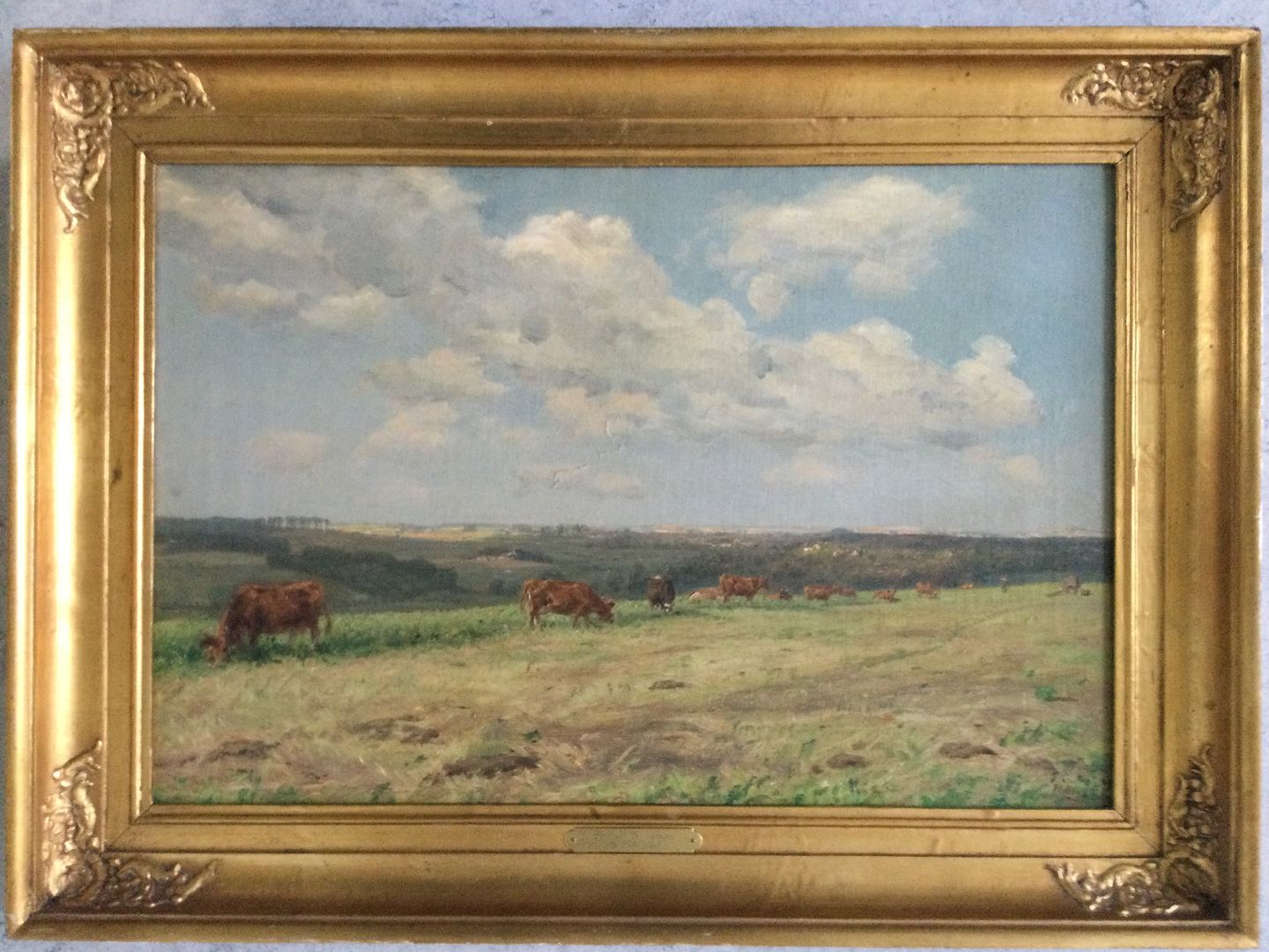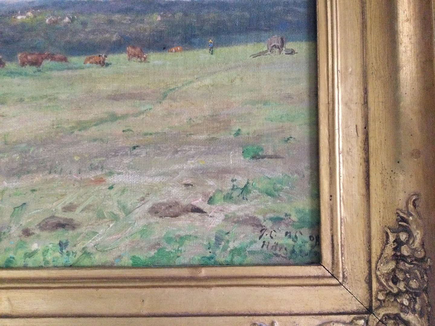 Bagpå blindramme: "Landskabet Hørsholm Mark 1905 og Mark og Køer gennemarbejdet 1908 Godf. Chr."